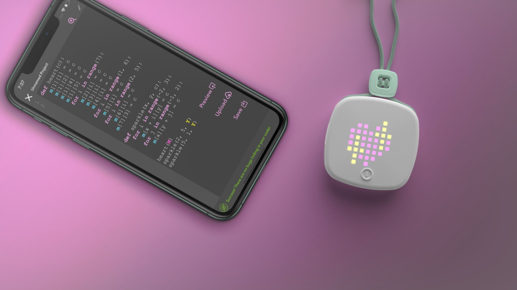 We teach our ImagiCharm Keychain Programming Workshop. The students create their own pixelated designs in Python. The basics of programming are taught in an intuitive way, using the ImagiCharm Keychains to display the coded designs and see live how changing code lines on a computer directly changes the output.